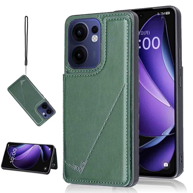 【Aqier】カバー 用 Reno13 A/Reno 13F 5G/13 FS 5G ケースカード(ダルグリーン)オッポ リノ13f リノ13fs 5g スマホケース 背面カード 収納 軽量 多機能 ケース 手帳型 オッポ リノ13a GREEN