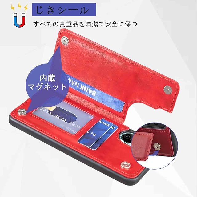 商品名:【Aqier】カバー 用 ZTE Libero 5G IV (リベロ・ファイブジー・フォー) A302ZT ケースカード (レッド)ZTE リベロ 5G IV リベロ5g 4 スマホケース 背面カード 収納 軽量 多機能 ケース 手帳型 ZTE Libero 5G 4 RED