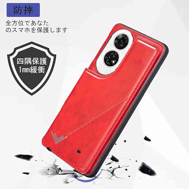 商品名:【Aqier】カバー 用 ZTE Anshin Family A303ZT ケースカード (レッド)zte リベロ a303zt スマホケース 背面カード 収納 軽量 多機能 ケース 手帳型 zte a303zt RED