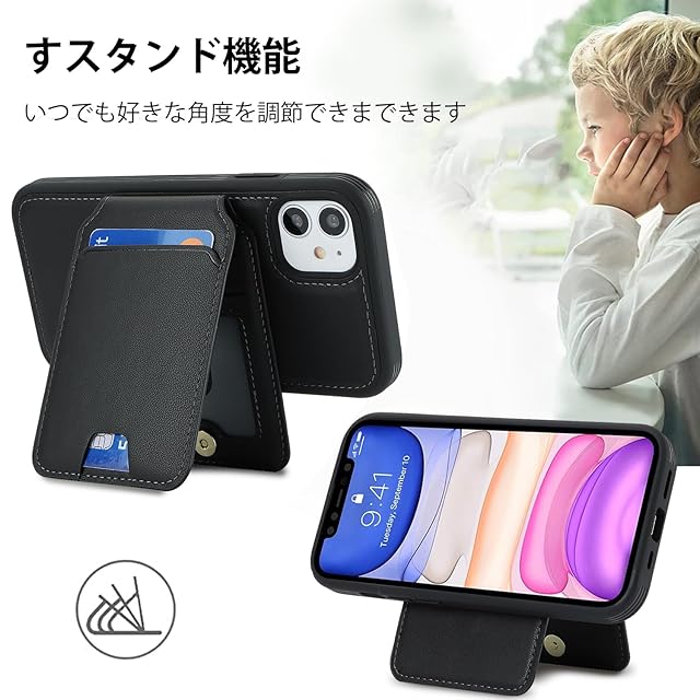 【リムーバブルカードケース】◀ケース背面には取り外し可能な磁気吸引カードケースが付属し、カードを5枚収納できる。たとえば、スイカカードなどの毎日の重要なカードや現金は簡単に保管できます。iPhoneシリーズ専用に設計されているので、ケースを装着したまま、音量ブボタン、カメラ、コネクターなどのを自由に使えます。実用性が高いです。◀横置きスタンド機能:取り外し可能なカードスロットは、横画面でも縦画面でも簡単に実現できる携帯電話スタンドに簡単に変換できます。映画を見たり読んだりすることで手を解放できます。