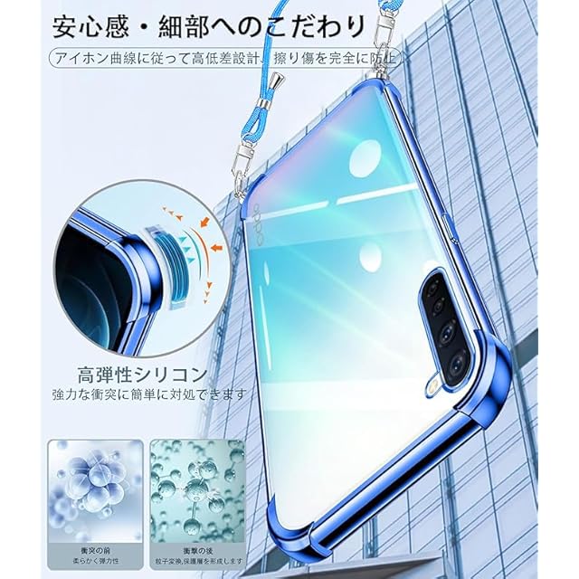 商品名:weiaoluo OPPO Reno3 A ケースクリア ショルダー オッポ リノ3a 5G スマホケース Reno3 A カバー耐衝撃 tpu バンパー 肩掛け 斜めかけ 首掛け 縄掛け カバー 透明 ック ストラップ付き 斜めがけ 織りストラップ付き 調節可能なショルダーカバー(ブルー)