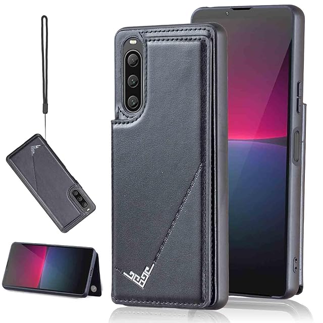 【Aqier】カバー 用 Xperia 5 III/docomo SO-53B / au SOG05 / Softbank A103SO ケースカード (ブラック)ソニー エクスペリア5iii ドコモso53b ワイモバイルa103so スマホケース 背面カード 収納 軽量 多機能 ケース 手帳型 xperia 5iii BLACK