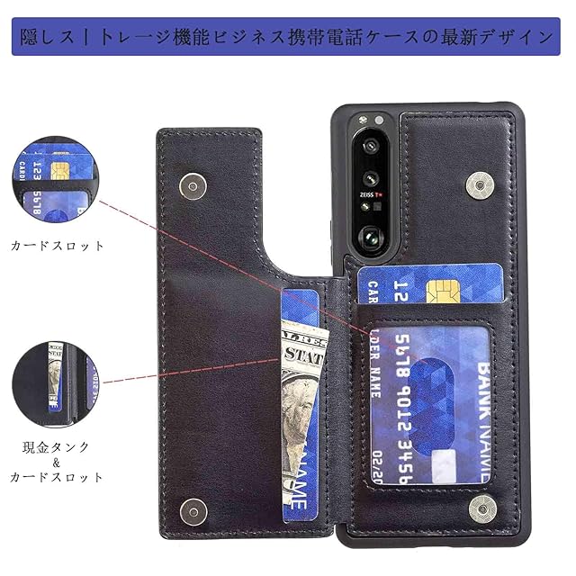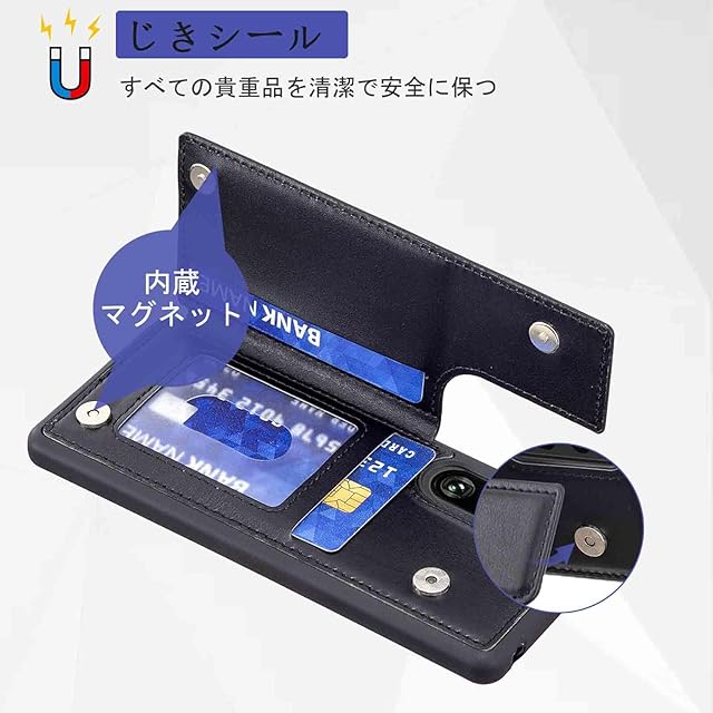 商品名:【Aqier】カバー 用 Xperia 10 V/SO-52D/SOG11/A302SO/XQ-DC44 ケースカード (ブラック) ソニー エクスペリア10v スマホケース 背面カード 収納 軽量 多機能 ケース 手帳型 xperia 10v BLACK