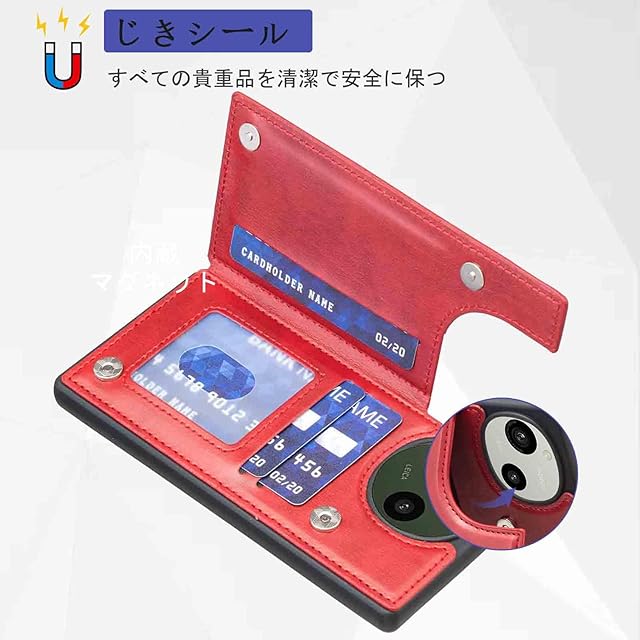 商品名:【Aqier】カバー 用 AQUOS R9 R10 / SH-51E SH-51F docomo ケースカード (レッド) アクオス r9 r10 ドコモ sh51e sh51f スマホケース 背面カード 収納 軽量 多機能 ケース 手帳型 シャープ r9 r10 RED