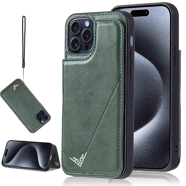 【Aqier】カバー 用 iPhone 15 PRO 6.1 inch ケースカード (ダルグリーン)アイフォン15プロ 6.1インチ スマホケース 背面カード 収納 軽量 多機能 ケース 手帳型 IPHONE15pro GREEN