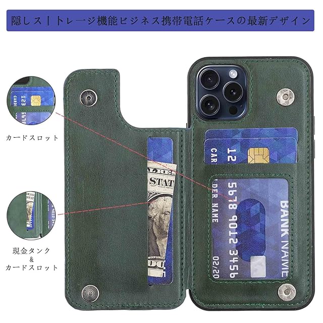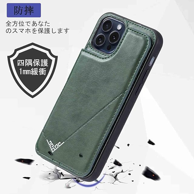 商品名:【Aqier】カバー 用 iPhone 15 PRO 6.1 inch ケースカード (ダルグリーン)アイフォン15プロ 6.1インチ スマホケース 背面カード 収納 軽量 多機能 ケース 手帳型 IPHONE15pro GREEN