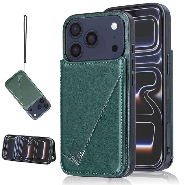 【Aqier】カバー 用 iPhone 17 Pro Max 6.9 inch ケースカード (ダルグリーン)アイフォン17プロ マックス 6.9インチ スマホケース 背面カード 収納 軽量 多機能 ケース 手帳型 アイフォン17promax GREEN