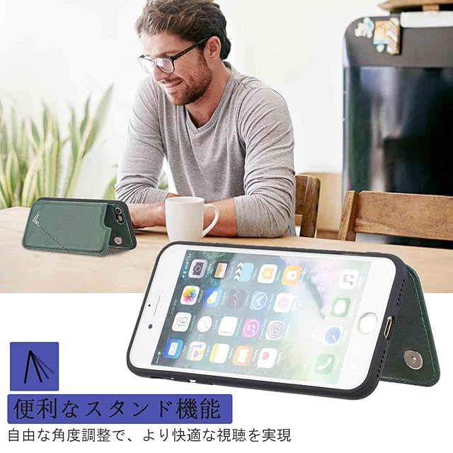商品名:【Aqier】カバー 用 iPhone SE (2020) / SE2 (第2世代) / iphone8 / iphone7 ケースカード (ダルグリーン) アップル アイフォse/se2/8/7 スマホケース 背面カード 収納 軽量 多機能 ケース 手帳型 iphone7g GREEN