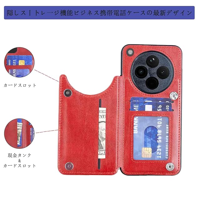 商品名:【Aqier】カバー 用 OPPO Find X8 5G CPH2651 ケースカード(レッド)オッポ ファインドX8 5g スマホケース 背面カード 収納 軽量 多機能 ケース 手帳型 オッポ find x8 RED