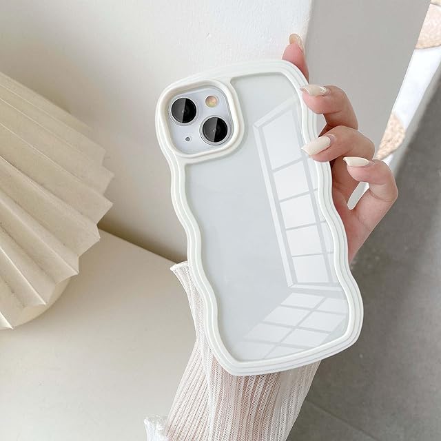 UEEBAI 対応 iPhone 13/iPhone 14 用の ケース ソフト TPU カバー 可愛い おしゃれケース 透明 ウェーブ デザイン スマホケース ワイヤレス充電対応 軽量 薄型 耐衝撃 人気 波型 バンパー スマホケース - ホワイト
