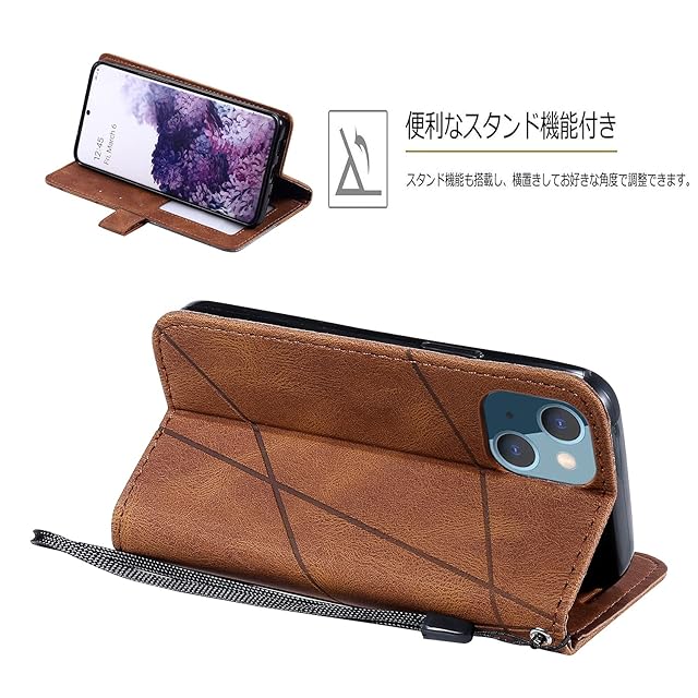 商品名:UnivoColors iPhone 13 手帳型ケース カード収納 スタンド機能 サイドマグネット TPUケース 軽量 ストラップ付き QI充電対応 横置き機能 防指紋 レンズ保護 全面保護 (ブラウン)