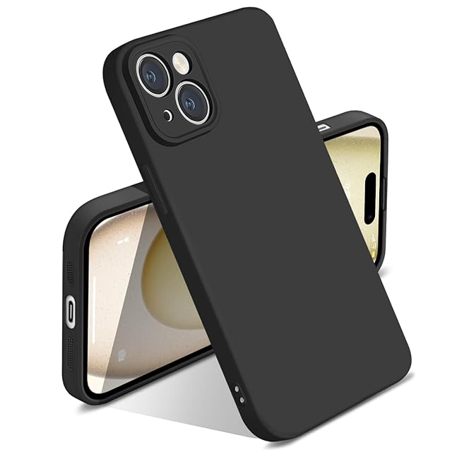 iPhone 15 Plus ケース シリコン 液体シリコン 耐衝撃 iphone15 Plus カバー 米軍MIL規格 薄型 軽量 ソリッドカラー シンプル ストラップホール付き マット感 人気 指紋防止 レンズ保護 ソフト ワイヤレス充電対応 6.7インチ対応(ブラック)