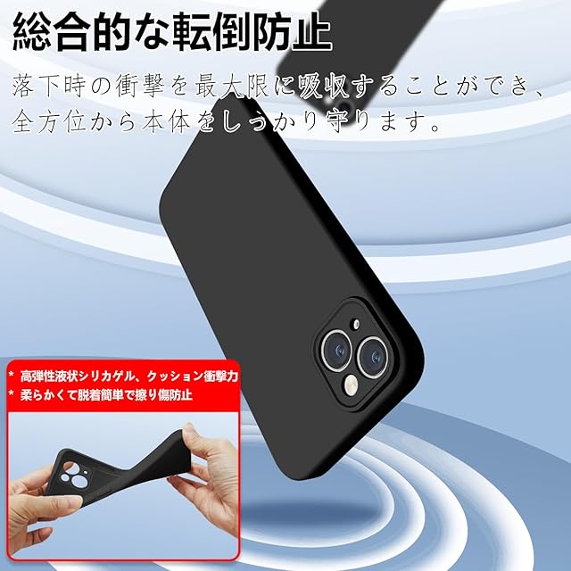 商品名:iPhone 15 Plus ケース シリコン 液体シリコン 耐衝撃 iphone15 Plus カバー 米軍MIL規格 薄型 軽量 ソリッドカラー シンプル ストラップホール付き マット感 人気 指紋防止 レンズ保護 ソフト ワイヤレス充電対応 6.7インチ対応(ブラック)