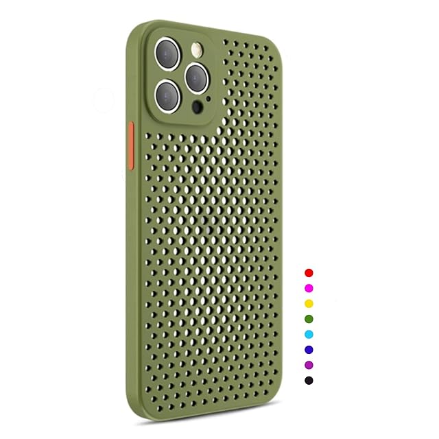【Pinscher(ピンシャー)】 iPhone12ProMax用 (グリーン) 6.7インチ メッシュ ケース 放熱 アイフォン12プロマックス用 ケース スマホケース カバー バンパー TPU Qi充電 耐衝撃 擦り傷防止 滑り止め 軽量 薄型 pc002-12pm-g