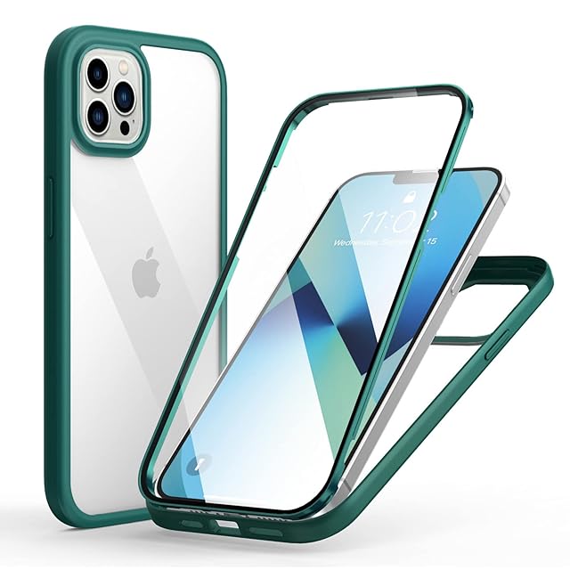 商品名:MQman iPhone13ProMax ケース 前面ガラス+背面ガラス 360°全面保護 100%画面タッチ感度 耐衝撃 強化ガラス フロント+バックプレート 軽量 ワイヤレス充電対応 前後 両面 カバー (iphone13promax用, 深緑)