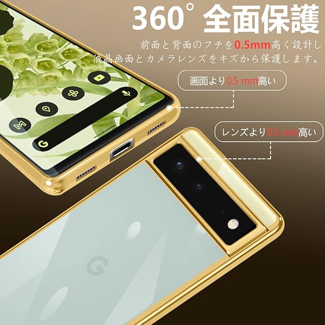 商品名:Google Pixel6 ケース クリア グーグル ピクセル 6 スマホケース TPU素材 薄型 耐衝撃 カバー ストラップホール付き 落下防止 滑り止め (ゴールド)