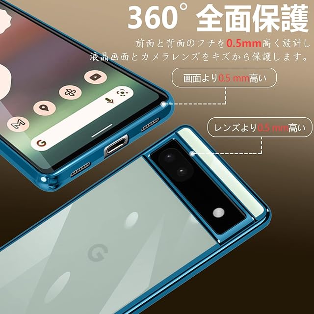 商品名:Google Pixel6A ケース クリア グーグル ピクセル 6A スマホケース TPU素材 薄型 耐衝撃 カバー ストラップホール付き 落下防止 滑り止め (ブルー)