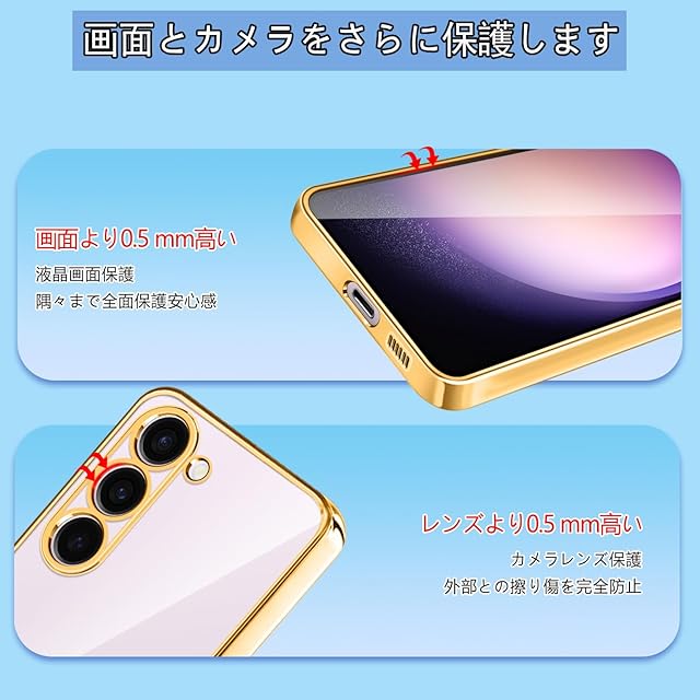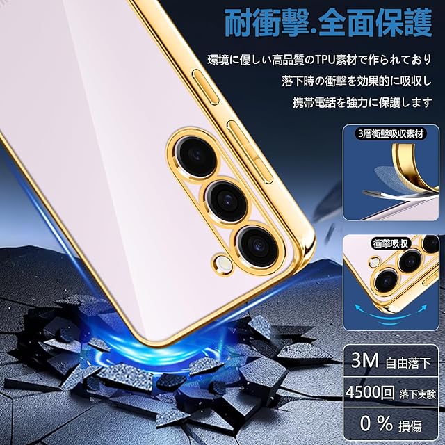 商品名:【FULEEYUHN】Samsung Galaxy S23 ケース クリア ギャラクシー S23 カバー 透明 TPU素材 耐衝撃 薄型 軽量 SC-51D SCG19 対応 韓国 ファッション スマホケース メッキ加工 黄変防止 人気 ストラップホール付き ワイヤレス充電対応(ゴールド)