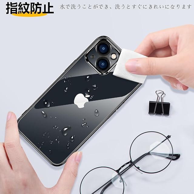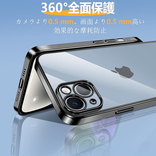 iPhone 14 ケース クリア 耐衝撃 透明 アイフォン14 カバー メッキ加工 完全な保護 黄変防止 落下防止 ファッション 薄型 軽量 TPU 柔らかい ワイヤレス充電 人気 保護カバー(ブラック)