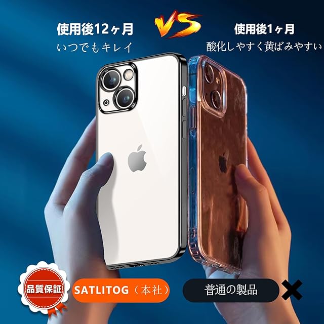 商品名:iPhone 14 ケース クリア 耐衝撃 透明 アイフォン14 カバー メッキ加工 完全な保護 黄変防止 落下防止 ファッション 薄型 軽量 TPU 柔らかい ワイヤレス充電 人気 保護カバー(ブラック)