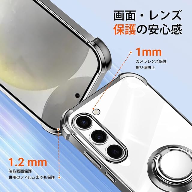 商品名:nahailun Galaxy S24 ケース クリア リング付き 耐衝撃 ギャラクシー S24 カバー Samsung s24 スマホケース 柔軟 軽量TPU 透明 薄型 レンズ保護スマホ 落下防止 滑り止め、すり傷防止 360°回転 スタンド機能 車載ホルダー対応 (ブラック)