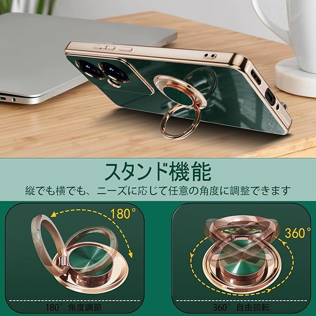 商品名:[ZoRoll] OPPO Reno11 A 対応 ケース リング付き、カバー スマホケース Reno11 A TPU シリコン メッキ加工カバー 磁気吸着 軽量 薄型 人気 耐衝撃 タンド機能付き 360回転 車載ホルダー対応 オッポ リノReno11 a 用 カバー (ダークグリーン)