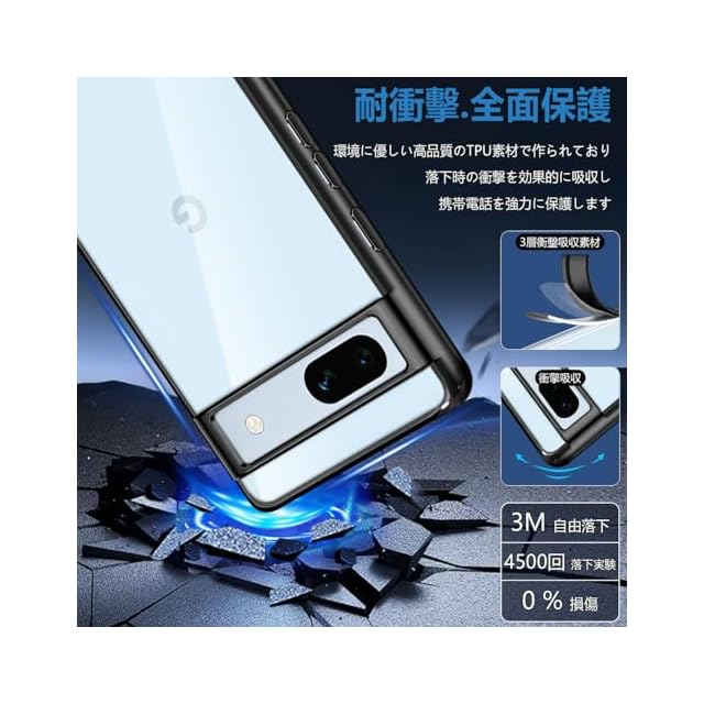 【高品質素材&精密設計】本製品は高品質のTPU素材を採用し、Google Pixel 7a のボディデザインに完璧にフィット。大切な 携帯電話を落下時の衝撃や傷など、あらゆるダメージからしっかりと守ります。スマホとぴったりフィットします、ケースを付けても接続端子やイヤホン、サイド側ボタンなどスムーズに操作できます。