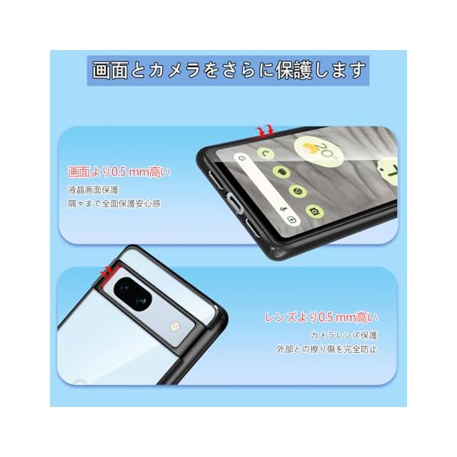 商品名:【Fuleeyuhn】Google Pixel 7a ケース クリア 耐衝撃 黄変防止 耐久性 ピクセル 7a カバー 透明 TPU素材 薄型 軽量 落下防止 擦り傷防止 スマホケース ストラップホール付き ワイヤレス充電対応 グーグル ピクセル 7a 携帯ケース 6.1インチ(ブラック)