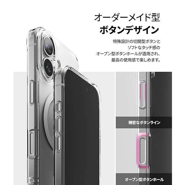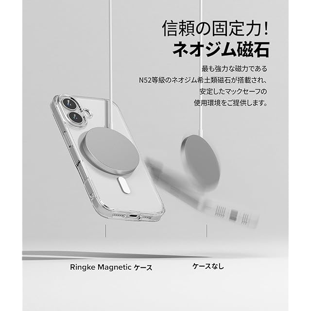 iPhone 16 用Ringkeフュージョンマグネットはクリアポリカーボネート背面パネル中央に11個の磁石インゴットを埋め込んで装置内部の磁気コイルと調整し、強力な磁気オーバーレイを実現する。<br><br> 磁性片を薄いポリカーボネート層で所定の位置に保持することにより、磁石の偶発的な損失や装置との直接接触を防止する。<br><br> Ringke Fusion Magneticの統合されたMagSafeコイルは、磁気パワーと接続を強化し、接続と生産性を向上させるためにMagSafe充電器との経験と互換性を改善します。 <br> マグネットリングは、さまざまなMag Safeアクセサリと標準のQiワイヤレス充電器を使用することもできます。<br> このスリムで軽量なケースは、スマートフォンを日常使用時の傷やごみから守ります。 どこにいても、軽くて使いやすいデバイスをお選びください! <br><br> Ringke Fusion Magneticは、クリアなポリカーボネートバックパネルと光沢のある光沢があり、ケースを通してデバイスの本物の色を完璧にキャプチャして表示します。<br> 柔らかいTPUエッジフレームは衝撃や衝撃を吸収し、革新的な滑り止め機能で偶発的な落下を効果的に防止します。<br><br> Duo-QuikCatchのランヤードホールは、あらゆる状況に対応して携帯性に優れたデバイスです! 指、手首、ネックストラップなどの付属品を装着することで、簡単かつ便利に携帯できます。 クロスボディーストラップでも、アップグレードされたQuikCatchランヤードホールで携帯電話を固定することができます。 **トラップは含まれません**