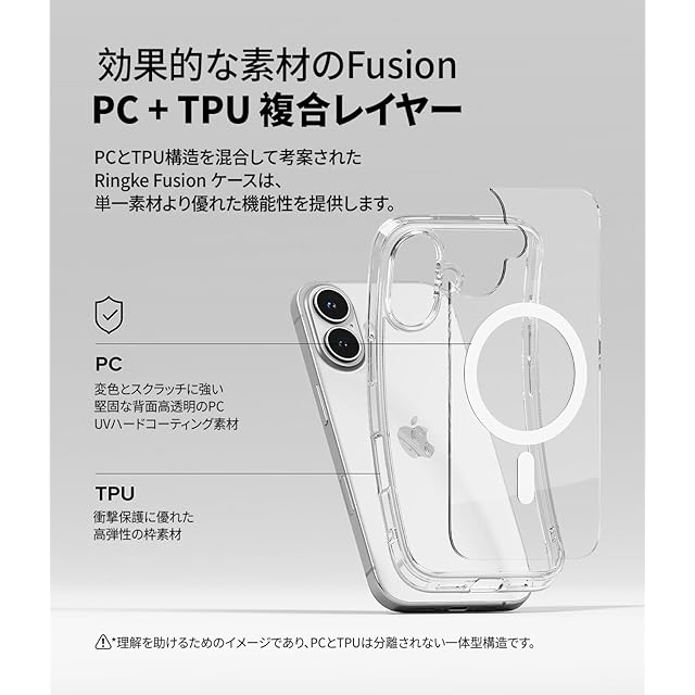 商品名:【Ringke】iPhone 16 ケース FUSION PC+TPU 斜め掛け 黄ばみにくい 耐黄変 落下防止 耐衝撃 米軍MIL規格取得 透明 マグネット搭載 クリアケース スマホケース スマホカバー アイフォン16 (ストラップホールあり) - Magnetic Clear