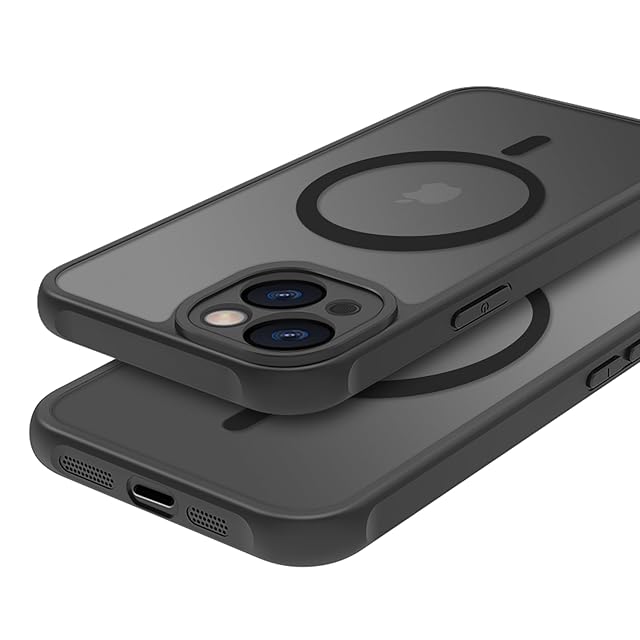 iphone 14 ケース スマホカバー マット半透明 マグネット搭載 ワイヤレス充電 耐衝撃 指紋防止 滑り止め 米軍MIL規格・Magsafe対応 アイフォン 14 用カバー インチ PinLiSheng (ブラック, iPhone 14)