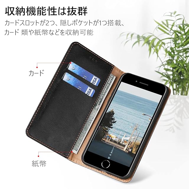 商品名:iphone se2 ケース 手帳型 iphone7ケース 手帳型 おしゃれ iphone8 ケース 手帳型 iphoneseケース 手帳型 第2世代 手帳型 iphone8 軽量薄型 iphone se 2ケース 手帳型 iphone 8 カバー手帳型 耐衝撃 iphonese2 手帳 アイホン8ケース手帳型 (iPhone SE 第2世代/8/7 対応) ブラック