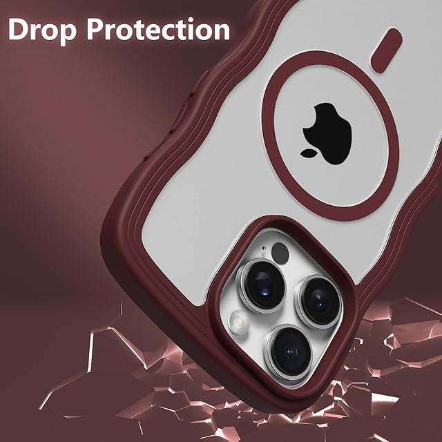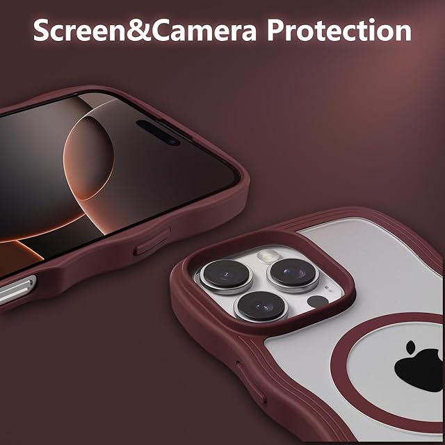 ZTOFERA iPhone 15ケース用,【MagSafe対応】キュートなウェーブの透明性マットスマホケース 女性用 女の子用 男性用 iPhone 15ケース,ワインレッド クリア
