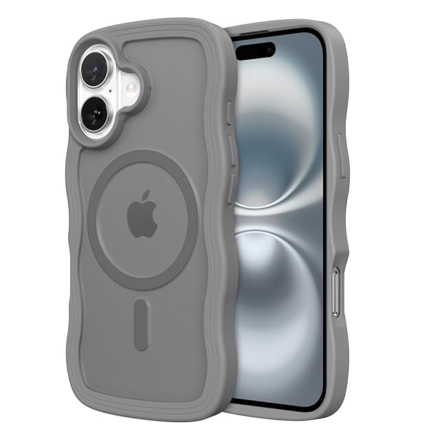 ZTOFERA iPhone 16 Plusケース用,【MagSafe対応】キュートなウェーブの半透明マットスマホケース 女性用 女の子用 男性用 iPhone 16 Plusケース,グレー