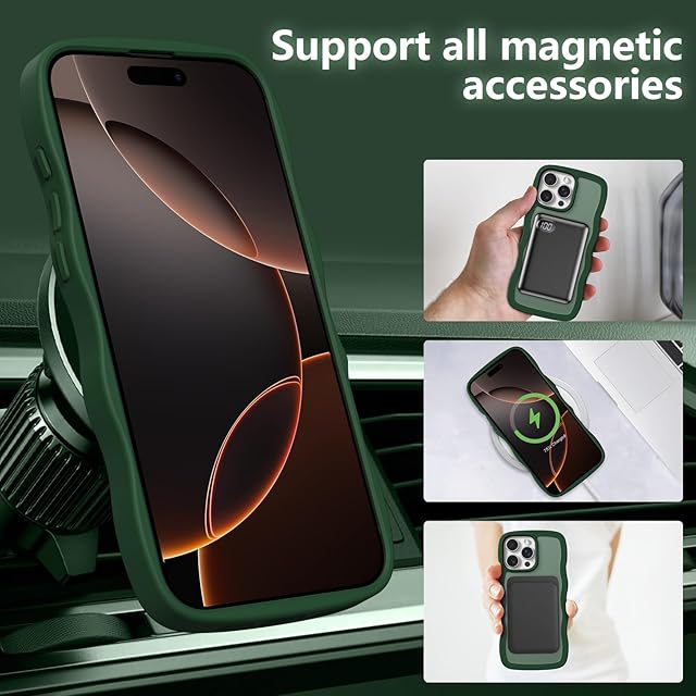 ZTOFERA iPhone 16 Proケース用,【MagSafe対応】キュートなウェーブの半透明マットスマホケース 女性用 女の子用 男性用 iPhone 16 Proケース,濃い緑