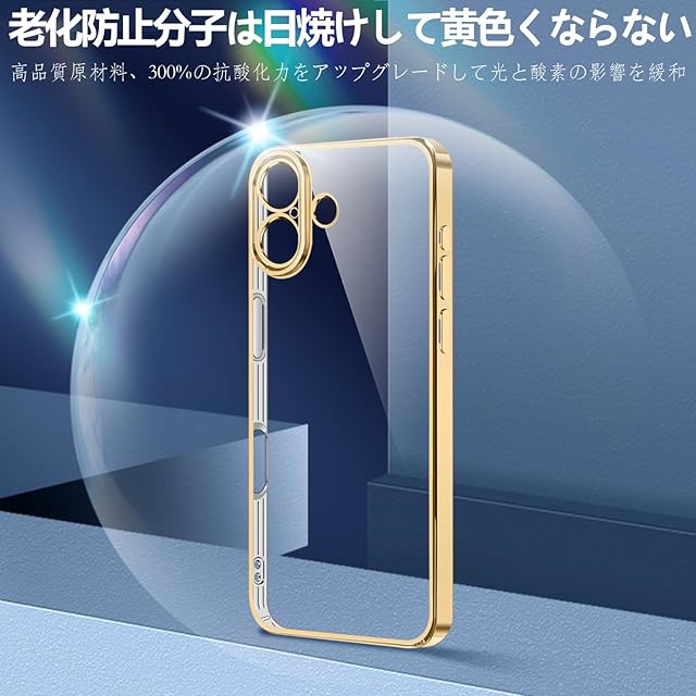 商品名:Montue iPhone 16 Plus ケース クリア 耐衝撃 米軍MIL規格 可愛い 韓国 薄型 軽量 スマホケース アイフォン16 plus 用 カバー ワイヤレス充電対応 (ゴールド)