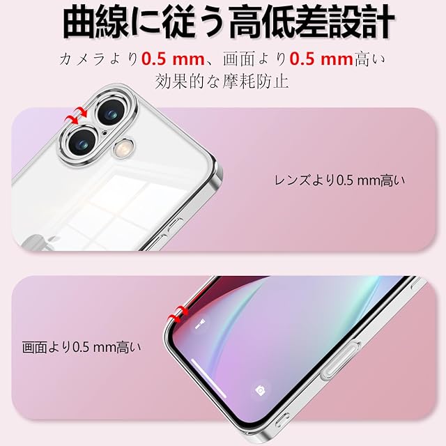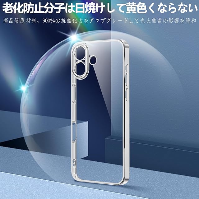 商品名:Montue iPhone 16 ケース クリア 耐衝撃 米軍MIL規格 可愛い 韓国 薄型 軽量 スマホケース アイフォン16 用 カバー ワイヤレス充電対応 (シルバー)