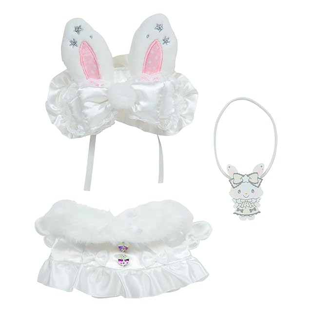 お気に入りのぬいぐるみやマスコットに着せて楽しめる。ヘッドドレス:上部にボールチェーンを出せる穴付き。洋服:うしろに面ファスナー付きでサイズ調節可、側面に空いている穴から腕を出せる。