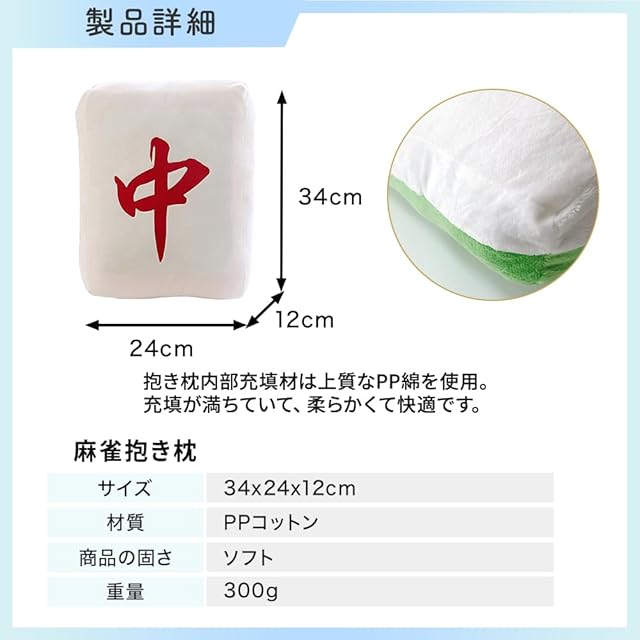 ふわふわで癒される!麻雀牌クッションです。 誕生日プレゼント、クリスマスギフト、バレンタイン、ホワイトデーなど、特別な日の麻雀好きのお友達への贈り物にぴったりです。 手洗い可能なので、汚れても簡単にお手入れできます。いつでも清潔&ふわふわの状態をキープ! 【こんな方におすすめ】 かわいいぬいぐるみクッションを探している方 抱き枕やクッションとしても使いたい方 インテリアにもなるおしゃれなデザインが欲しい方 プレゼントに喜ばれるアイテムをお探しの方