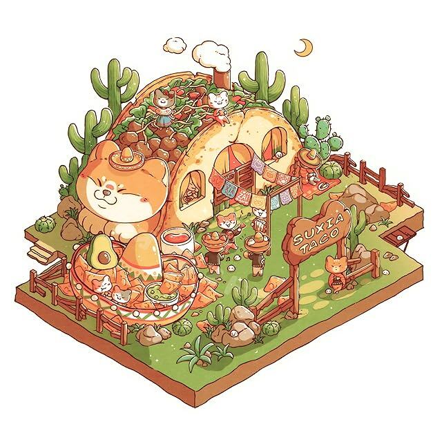 クオッカストア 【3D 造景 シーンシール】 ステッカー ハウスステッカー 手帳 可愛い 趣味 3D 立体 おもちゃ 紙素材 パズル ミニチュア (C.トルティーヤチップスパーティー)