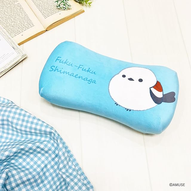 MORIPiLO 低反発クッション 腰枕 シマエナガ ふくふくシマエナガ (ミニリラックスピロー) 肌にやさしいふわモチ触感 グッズ ぬいぐるみ 昼寝枕 (スノー ブルー) 15x31x8cm キャラクター まくらのモリシタ