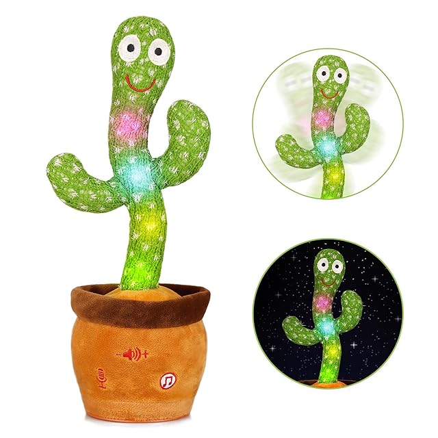 MIAODAM 動くおもちゃ 踊る動く喋るおもちゃ 誕生日プレゼント 歌うダンシングサボテン 子供の日 クリスマス スキット 新年飾り 真似するもの まねしゃべる ぬいぐるみ 刺繍の日 刺繍ホタン 箱詰め dancing cactus toy 録音 音量調整可能