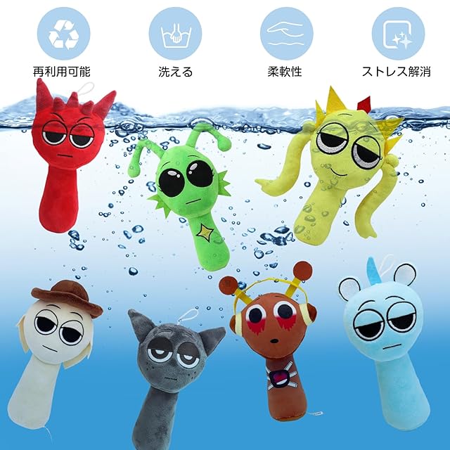 <b>商品の説明</b><br> キャラによりサイズは異なります,キュートさ満点のキャラ形、柔らかいマイクロ綿をたっぷり詰め込みました。かわいい外観と満足のいく感触を持っています(表地:短毛生地、中素材:ソフトppコットン)。<br><br> このリズムボックスゲーム周辺のぬいぐるみはゲーム中の定番キャラクターデザインを採用し、ゲーム中のキャラクターイメージを復元した。これらのキャラクターのかわいい造形と鮮やかな色彩は、すぐにゲームファンや子供たちの注目を集めることができます。<br><br> このぬいぐるみはゲームの周辺機器の集合だけでなく、机、ベッドの頭、ソファーなどに置いて部屋の装飾にすることもできます。かわいらしい外観と実用的な機能は、さまざまな場面に最適で、装飾的で実用的です。<br><br> <b>仕様</b><br> 表:短毛生地。中身:ソフトppコットン<br> 色: 青/紫/緑/ピンクなど<br> サイズ:20cm<br><br> <b>梱包内容:</b><br> 1* ぬいぐるみ<br><br>