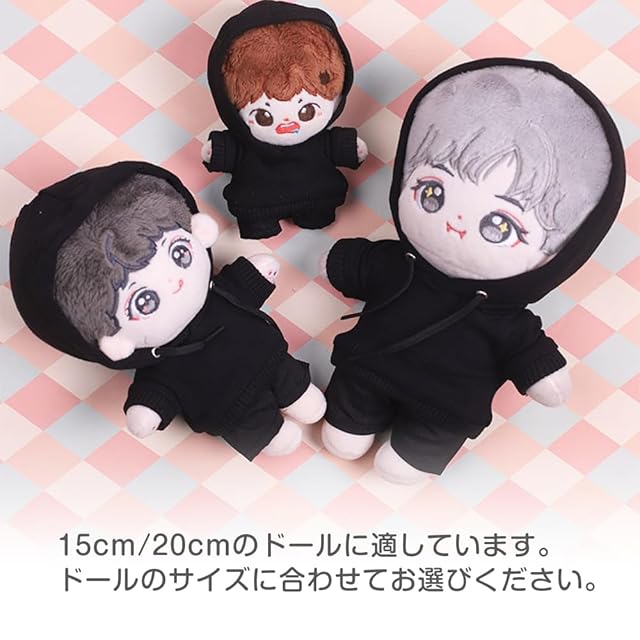 商品名:ESJNNK ぬいぐるみ 2点セット ぬい服 人形の服 綿人形の服 人形ベビー服 着せ替え 無地 パーカー デニムパンツ (ホワイト, 15cm)